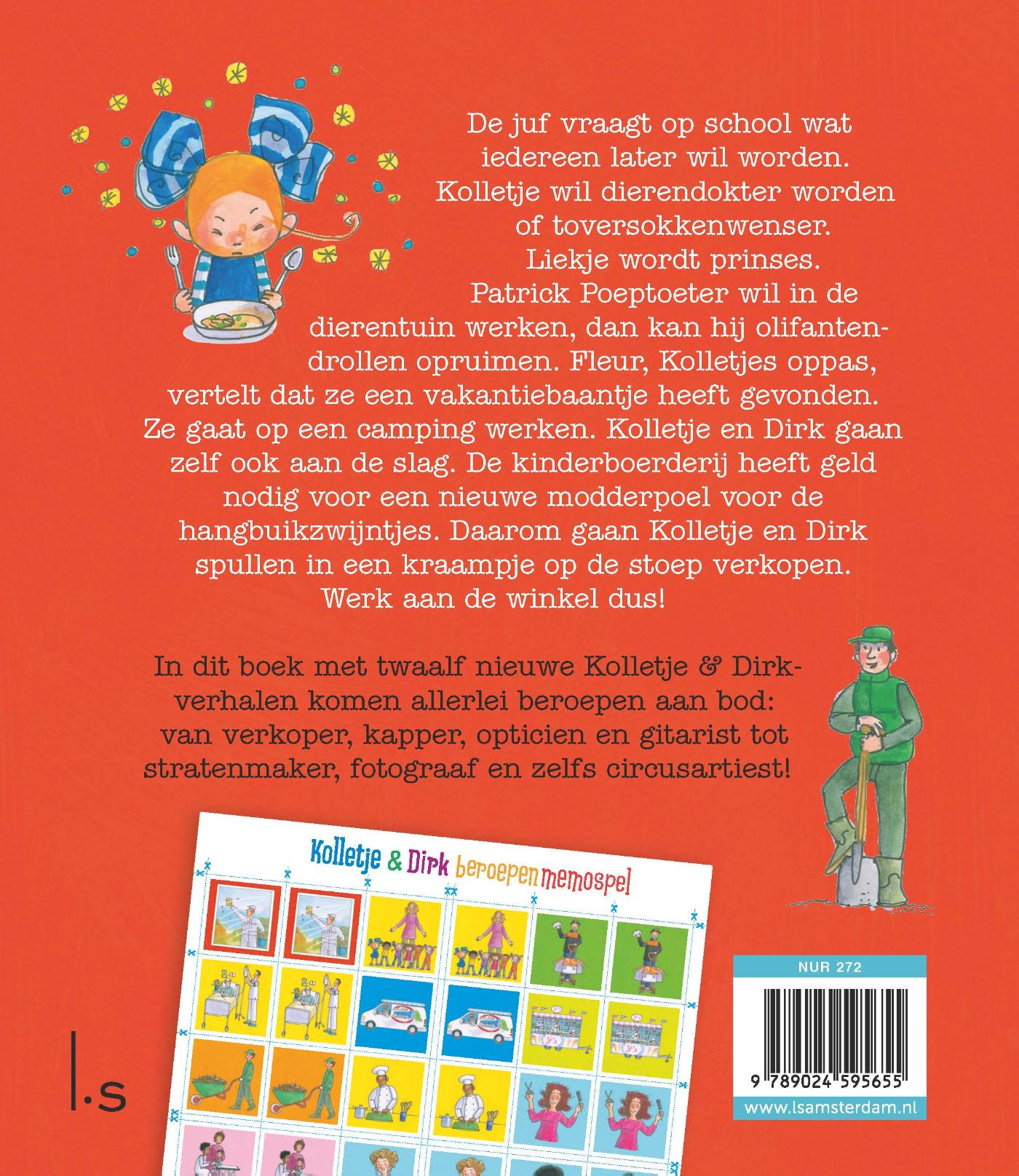 In dit boek met twaalf nieuwe Kolletje & Dirk-verhalen komen allerlei beroepen aan bod: van verkoper, kapper, opticien en gitarist tot stratenmaker, fotograaf en zelfs circusartiest!