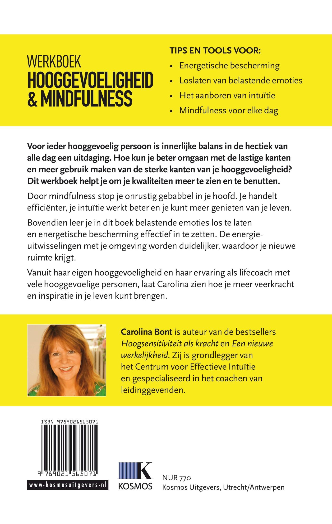 ‘Werkboek Hooggevoeligheid & Mindfulness’ van Carolina Bont is het langverwachte vervolg op haar eerdere bestsellers over hooggevoeligheid en hoogsensitiviteit (meer dan 55.000 exemplaren verkocht). Als je hooggevoelig bent, is balans vinden in de hectiek van alledag een extra uitdaging. Dit werkboek helpt om beter om te gaan met de lastige kanten van hooggevoeligheid én optimaal de sterke kanten ervan te gebruiken.