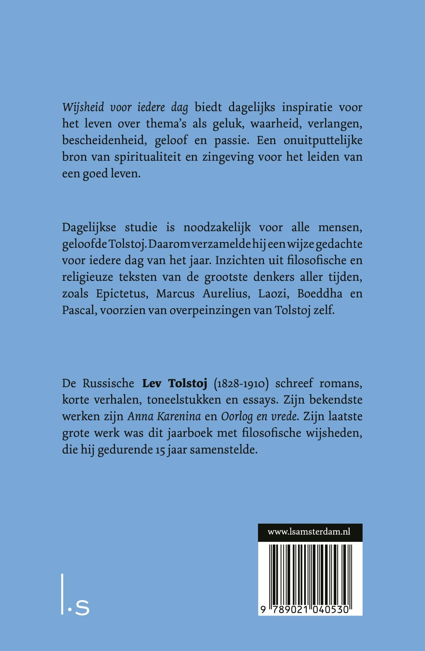 ‘Dagelijkse studie is noodzakelijk voor alle mensen. Dit is een boek dat bestaat uit een wijze gedachte voor elke dag van het jaar, van de grootste filosofen aller tijden en alle mensen… Epictetus, Marcus Aurelius, Lao-Tzu, Buddha, Pascal.’ Leo Tolstoj