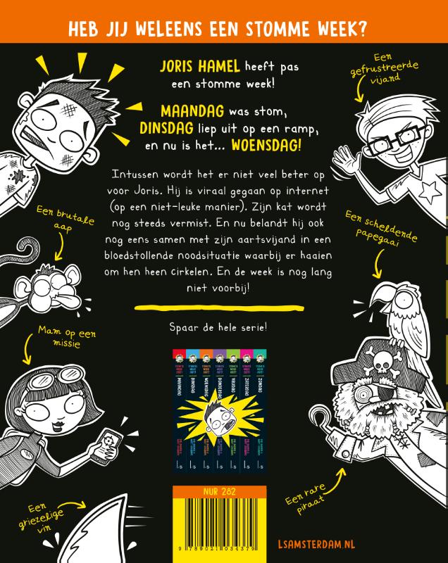 Joris Hamel beleeft zijn stomste week ooit. Na Maandag en Dinsdag belooft ook Woensdag een ramp te worden. In deze graphic-novelserie van Eva Amores en Matt Cosgrove volg je hem een week lang. Elke dag beslaat een boek, dus spaar de hele serie!