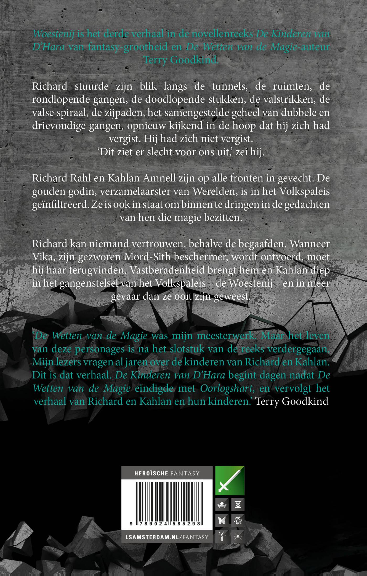 Woestenij is het derde verhaal in de novellenreeks De Kinderen van D’Hara van De Wetten van de Magie-auteur Terry Goodkind.