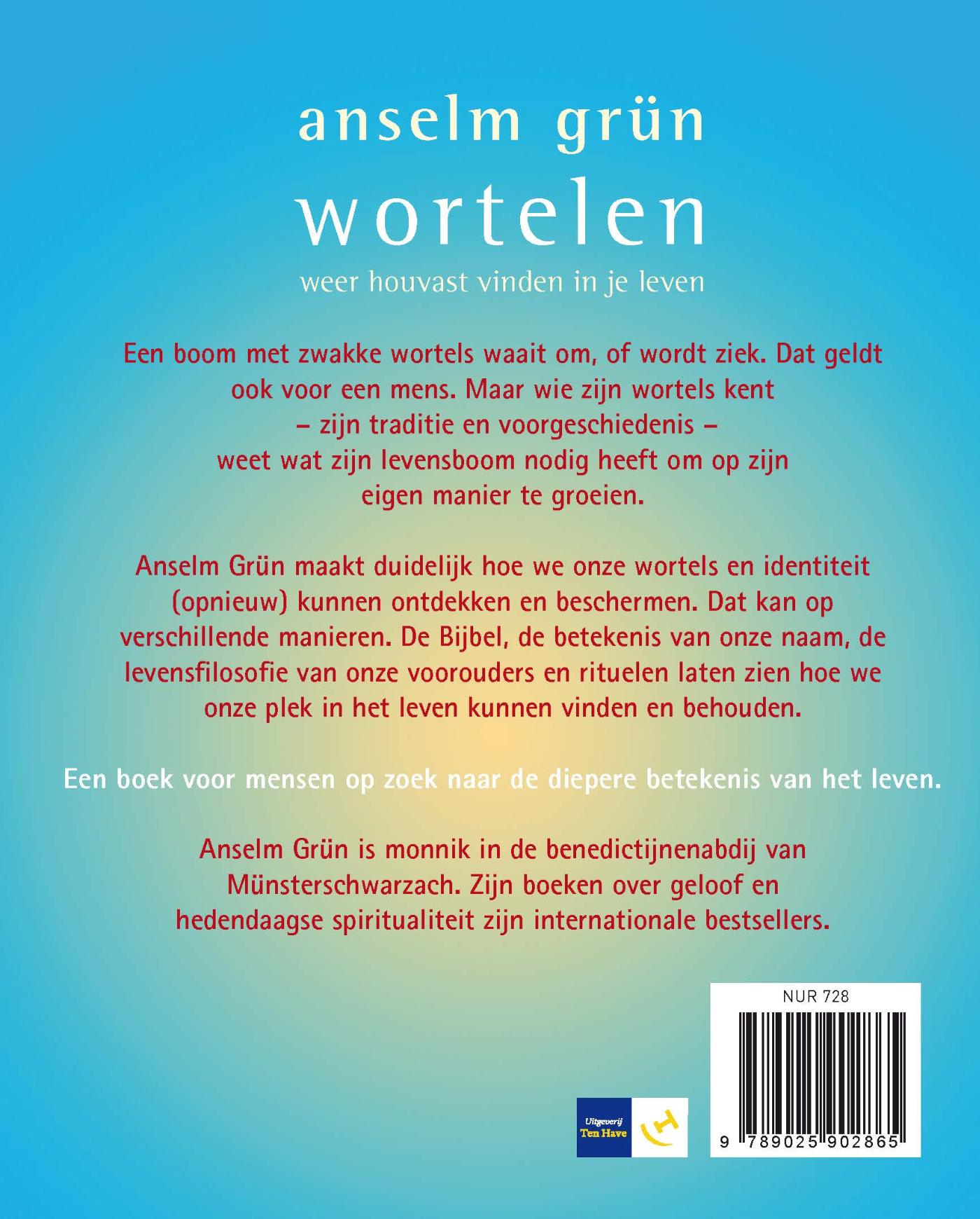 Een boom met zwakke wortels waait om, of wordt ziek. Dat geldt ook voor een mens, die wortelt in zijn traditie en voorgeschiedenis. Niet voor niets spreken we van onze 'stamboom'. Anselm Grün maakt duidelijk hoe belangrijk de levensinstelling van onze voorouders is. Die kan ons houvast bieden. Als we gewond zijn geraakt of losgeslagen zijn door de moderne hectiek, kunnen rituelen ons helpen om weer te wortelen, en op te leven. Grün put daarvoor uit de Bijbel en uit de kerkelijke traditie.