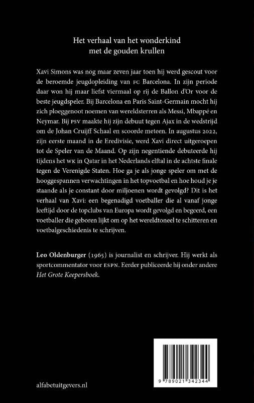 Xavi Simons was nog maar zeven jaar toen hij werd gescout voor de beroemde jeugdopleiding van FC Barcelona. In zijn periode daar won hij maar liefst viermaal op rij de Ballon d’Or voor de beste jeugdspeler. Bij Barcelona en Paris Saint-Germain mocht hij zich ploeggenoot noemen van wereldsterren als Messi, Mbappé en Neymar. Bij PSV maakte hij zijn debuut tegen Ajax in de wedstrijd om de Johan Cruijff Schaal en scoorde meteen. In augustus 2022, zijn eerste maand in de Eredivisie, werd Xavi direct uitgeroepen tot de Speler van de Maand. Op zijn negentiende debuteerde hij tijdens het WK in Qatar in het Nederlands elftal in de achtste finale tegen de Verenigde Staten. Hoe ga je als jonge speler om met de hooggespannen verwachtingen in het topvoetbal en hoe houd je je staande als je constant door miljoenen wordt gevolgd? Dit is het verhaal van Xavi: een begenadigd voetballer die al vanaf jonge leeftijd door de topclubs van Europa wordt gevolgd en begeerd, een voetballer die geboren lijkt om op het wereldtoneel te schitteren en voet algeschiedenis te schrijven.