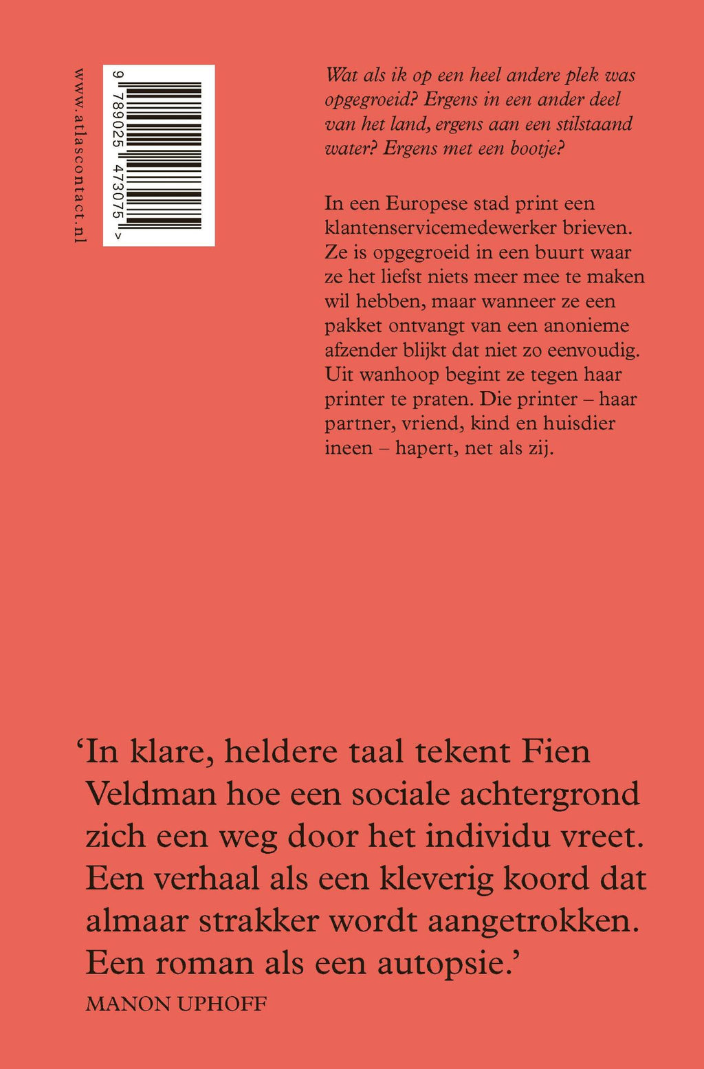 In een Europese stad print een klantenservicemedewerker brieven. Ze is opgegroeid in een buurt waar ze het liefst niets meer mee te maken wil hebben, maar wanneer ze een pakket ontvangt van een anonieme afzender blijkt dat niet zo eenvoudig. Uit wanhoop begint ze tegen haar printer te praten. Die printer – haar partner, vriend, kind en huisdier ineen – hapert, net als zij.