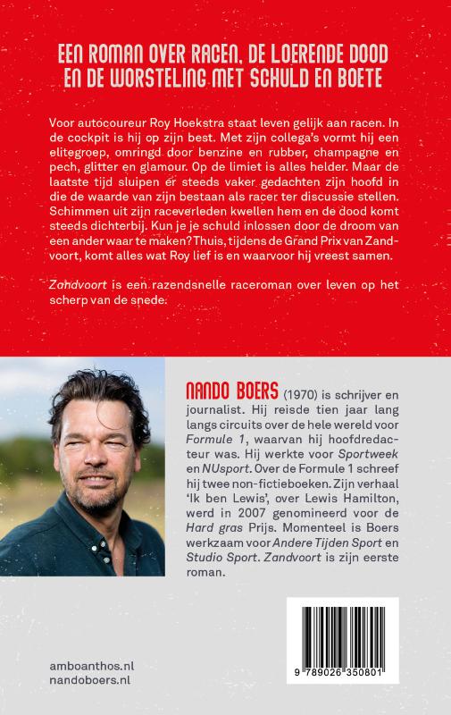 'Formule 1-bolides van stalen buizen, draadjes, slangetjes, draadnagels en plaatwerk. Dat is hoe de koningsklasse van de autosport er in de jaren 70 uit zag. En er was nog een belangrijk aspect aan het racen van bijna 50 jaar geleden: het was gevaarlijker dan het tegenwoordig is. Levensgevaarlijk zelfs. Dat zijn ingrediënten voor een roman, zou je zeggen. En dat klopt. Nando Boers dacht er ook zo over en schreef Zandvoort.' – Langs de lijn en omstreken