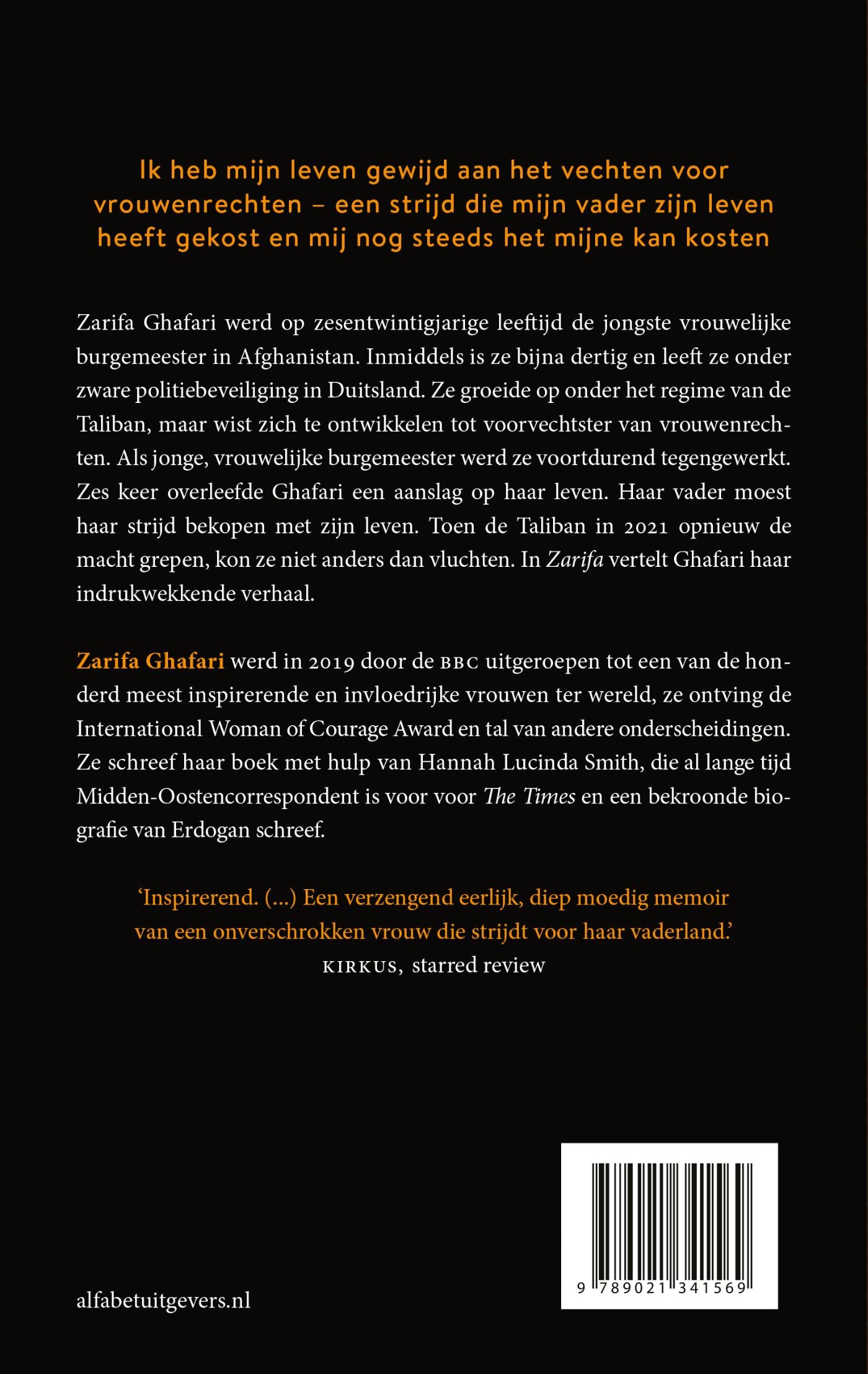 ‘Iedereen die de meedogenloze realiteit wil leren kennen van een Afghaanse vrouw die verschil wil maken, kan geen verhelderender boek vinden. Zarifa zal je hart breken.’ The Sunday Times