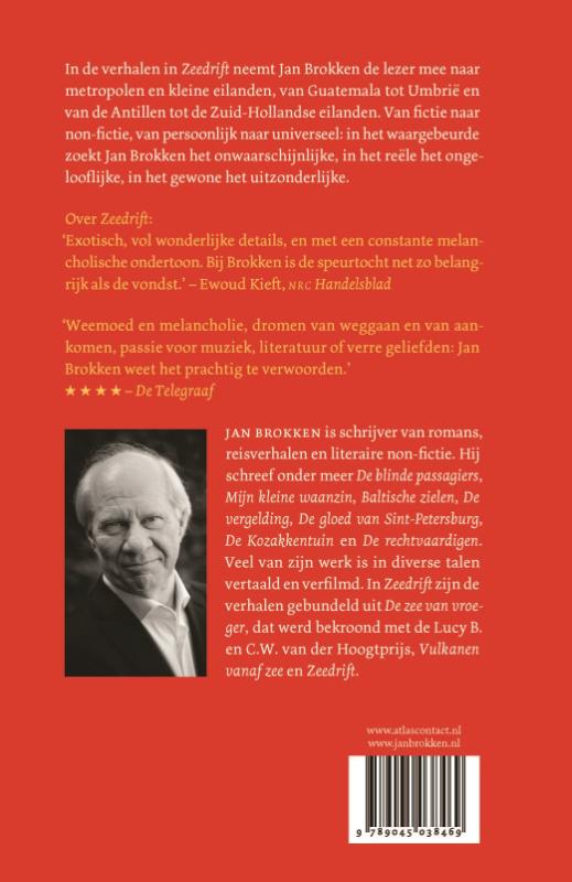 In de verhalenbundel Zeedrift neemt Jan Brokken de lezer mee naar metropolen en kleine eilanden, van Guatemala tot Umbrië en van de Antillen tot de Zuid-Hollandse eilanden. Van fictie naar non-fictie, van persoonlijk naar universeel: in het waargebeurde zoekt Jan Brokken het onwaarschijnlijke, in het reële het ongelooflijke, in het gewone het uitzonderlijke.