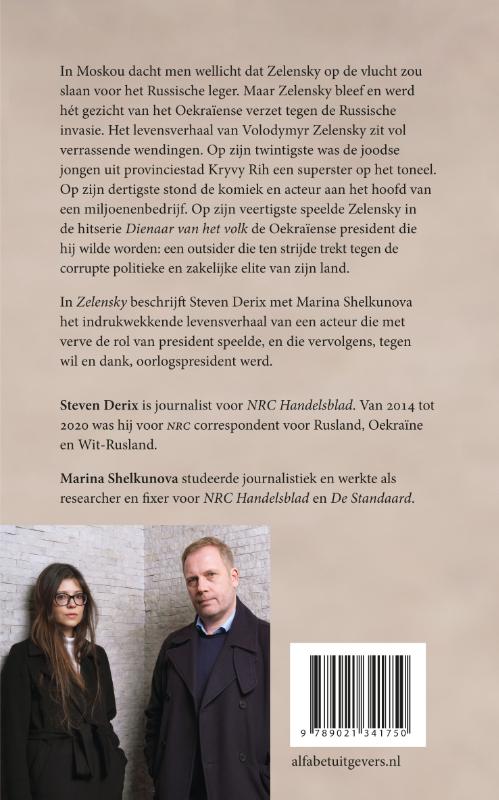 In Zelensky beschrijft Steven Derix met Marina Shelkunova het indrukwekkende levensverhaal van een acteur die met verve de rol van president speelde, en die vervolgens, tegen wil en dank, oorlogspresident werd.