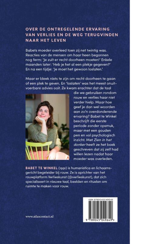 Ze kwam erachter dat de taal die we gebruiken omtrent rouw en verlies haar niet verder hielp. Maar hoe geef je dan wel woorden aan zo’n overdonderende ervaring? Babet te Winkel beschrijft de eerste periode zonder opsmuk, maar met een gouden pen en vol psychologisch inzicht. In Zien in het donker heeft ze het boek geschreven dat zij zelf had willen lezen nadat haar moeder was overleden.