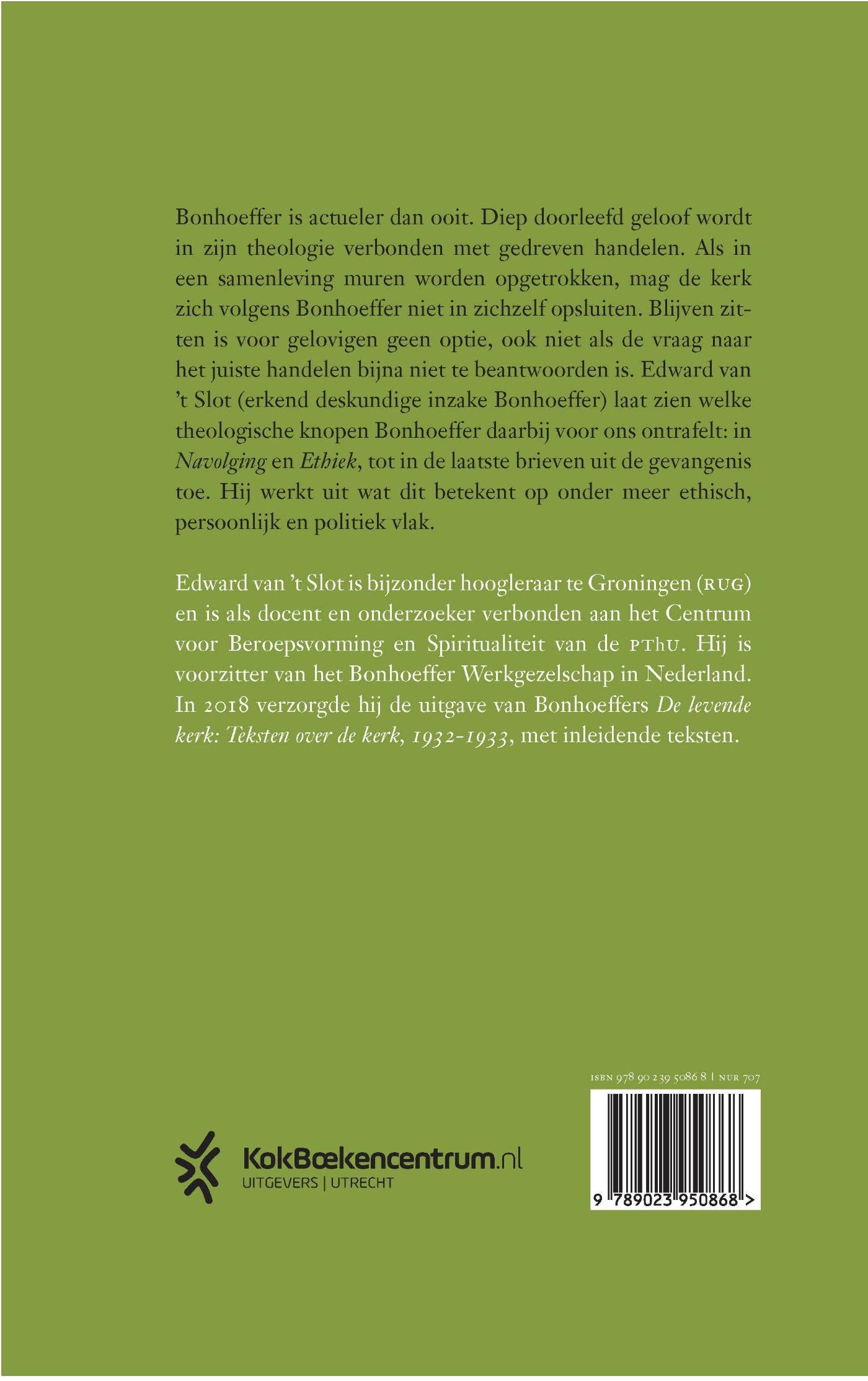 Bonhoeffer is actueler dan ooit. Een diep doorleefd geloof wordt in zijn theologie verbonden met een gedreven handelen. Als in een samenleving muren worden opgetrokken, mag de kerk zich volgens Bonhoeffer niet in zichzelf opsluiten. Blijven zitten is voor gelovigen geen optie, ook niet als de vraag naar het juiste handelen bijna niet te beantwoorden is. De auteur (erkend deskundige inzake Bonhoeffer) werkt dit uit in vijf thema’s, onder andere op ethisch, politiek en persoonlijk vlak.