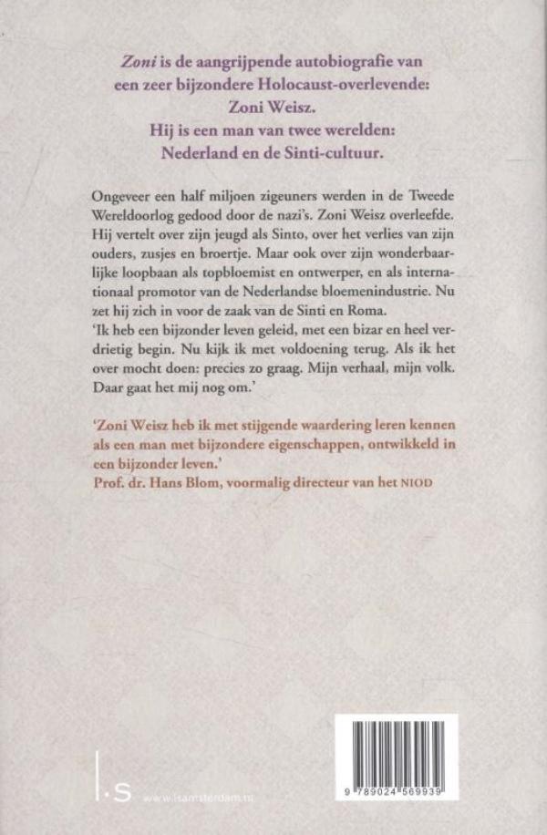 Zoni is de aangrijpende autobiografie van een zeer bijzondere Holocaust-overlevende: Zoni Weisz. Hij is een man van twee werelden: Nederland en de Sinto-cultuur.