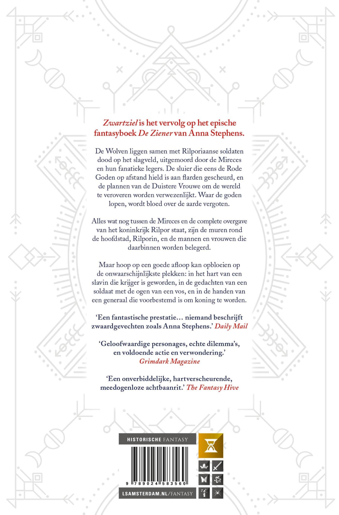 Zwartziel is het vervolg op het epische De Ziener van Anna Stephens. Een duister verhaal over oorlog, familie, godsdienstextremisme en verraad dat doet denken aan de boeken van Joe Abercrombie en Scott Lynch.